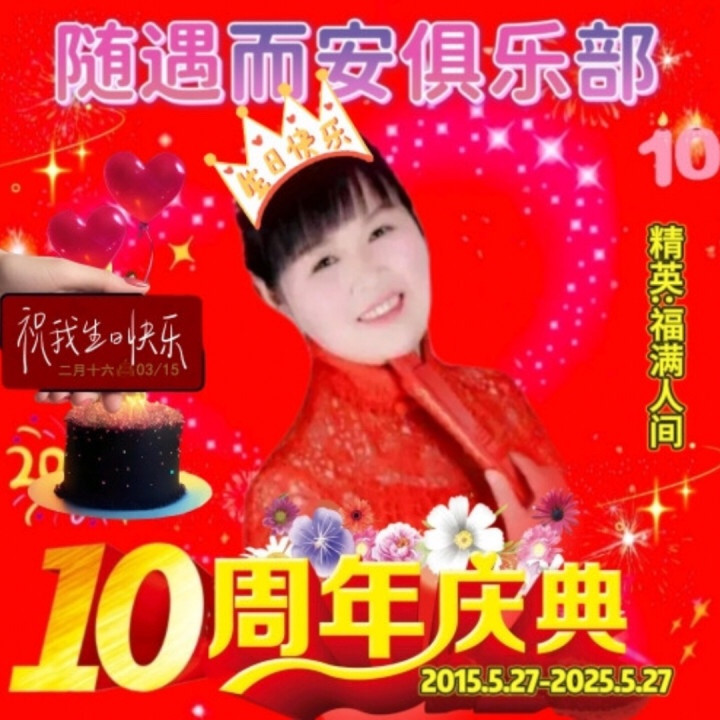 又是一年生日到来首祝自己生日快乐🎂心存感恩珍惜当下!同祝随遇而安俱乐部2025.5.27号建立十年庆🎂岁月如歌风雨同行、不忘初心共庆颂👉十载光阴匆匆过,美好情义心中留!愿此心依旧,岁月无恙!让我们一起享受音乐、快乐生活;愿俱乐部越来越好!感谢祝福同在🌹🌹