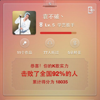 来听听我唱的《你是我一生中最大的骄傲》,击败了全国54%的人.