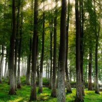 霞光万丈起林中候鸟归