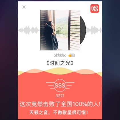 我唱的这首歌打败了全国100%的人,快来听听吧。