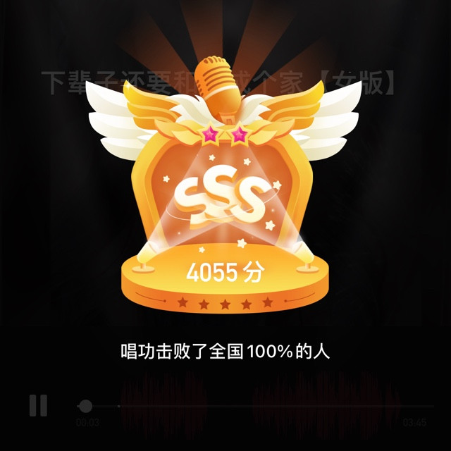 我唱的这首歌打败了全国100%的人,快来听听吧。