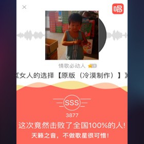 我唱的这首歌打败了全国100%的人,快来听听吧。
