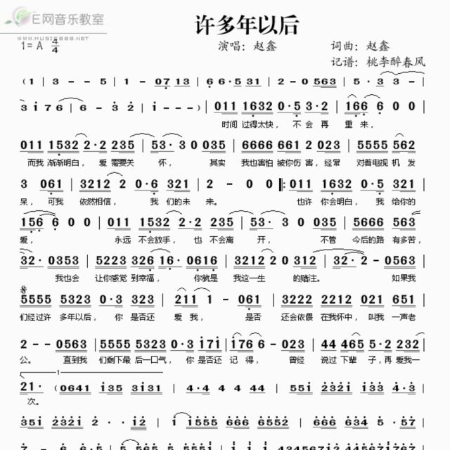 【每周一歌】《许多年以后》词曲:赵鑫。歌词提示:时间过得太快 不会再重来 而我渐渐明白 爱需要关怀 其实我也害怕被你伤害 经常对着电视机发呆 可我依然相信我们的未来……🎵🎵离开歌谱还是不会,后面重复部分音符变化的几个音歌谱上没有。🎤