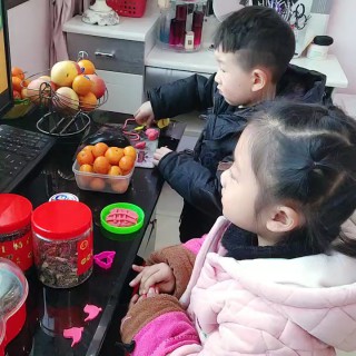 看把孩儿难为的 正吃东西了