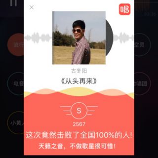 我唱的这首歌打败了全国85%的人,快来听听吧。