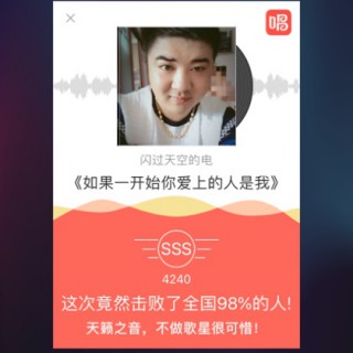 很好,很不错!你的歌喉很适合唱歌,唱得很好,就是唱的过程有点杂音,可能是麦克风的问题吧。你可以关注葳信公众呺【歌神舍得】关注后回复【歌神技巧】即可领取专用麦克风,祝你越唱越好!