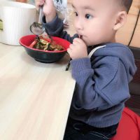 啃馒头的小男孩