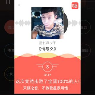我唱的这首歌打败了全国65%的人,快来听听吧。