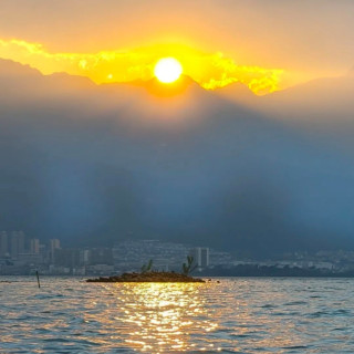 晚风吹过落日海