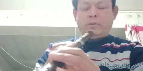 朋友的笛子吹奏很动听,可惜我不会吹!