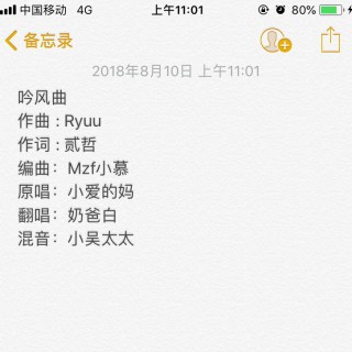 溯往 原曲 雅乐寻踪 策划 毛蛋 填词 盛北 翻唱 奶爸白 后期 黄钰棕后期团队 海报 苏栗无 题字 叶巇 鸣谢 简乔 杜衡无香