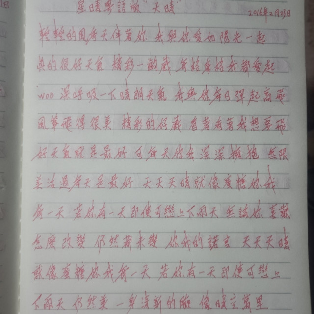 #玩转共创#社长历年来创作粤语歌词收集篇。星晴粤语版″天晴"创作时间:2016年2月23日。如果歌友和声的话,你唱你的国语就行了,粤国合壁!