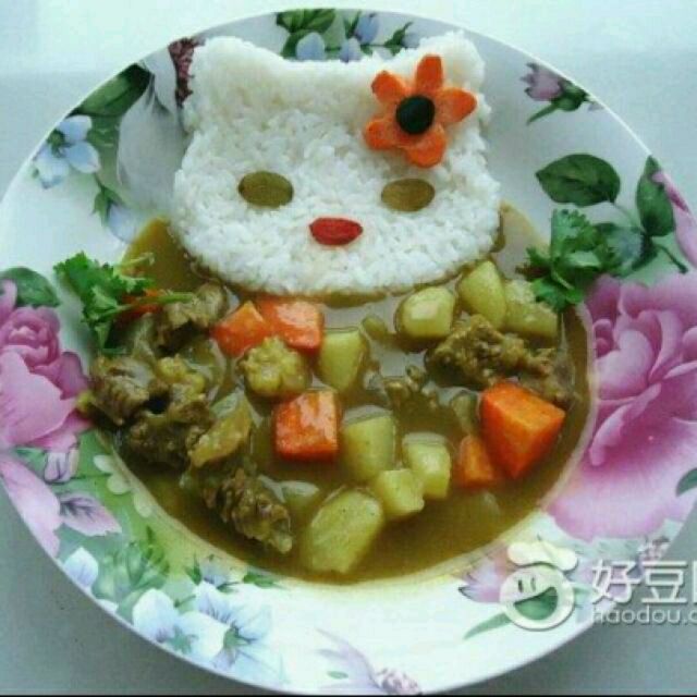 新鲜哒咖喱喵饭出炉啦😍请大家品尝😄若好吃记哒点赞哦😉