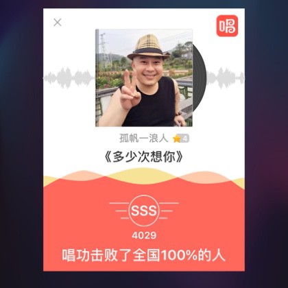 我唱的这首歌打败了全国100%的人,快来听听吧。