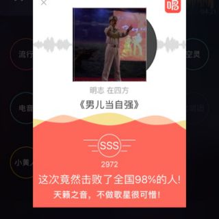 我唱的这首歌打败了全国100%的人,快来听听吧。