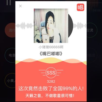 我唱的这首歌打败了全国99%的人,快来听听吧。