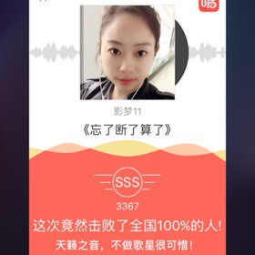 我唱的这首歌打败了全国100%的人,快来听听吧。