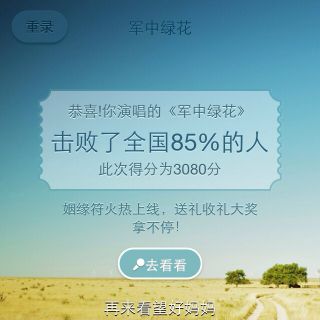 来听听我唱的《军中绿花》,击败了全国69%的人.