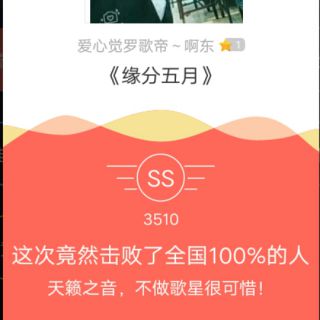 我唱的这首歌打败了全国39%的人,快来听听吧。