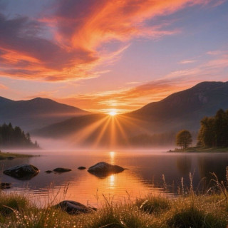 湖光朝霞