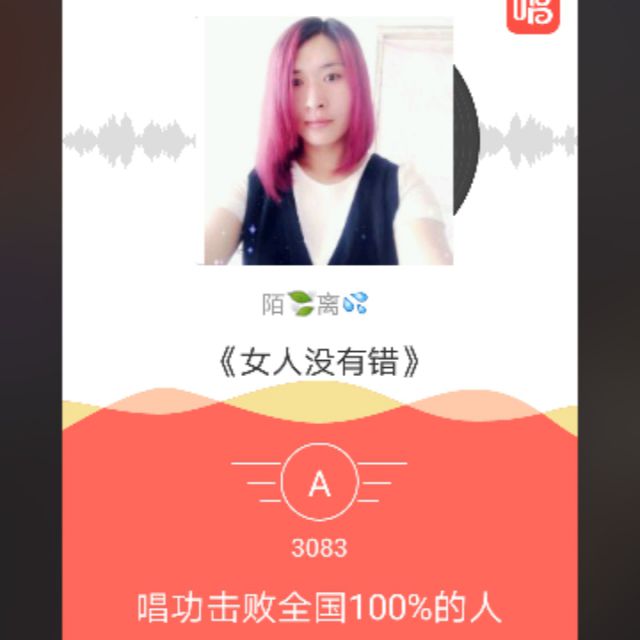 我唱的这首歌打败了全国100%的人,快来听听吧。