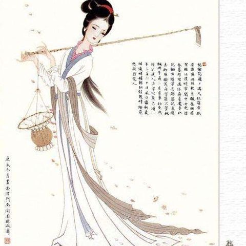 花谢花飞飞满天,红消香断有谁怜? 明媚鲜妍能几时,一朝漂泊难寻觅。 愿奴胁下生双翼,随花飞到天尽头。 天尽头,何处有香丘! 未卜侬身何日丧,他年葬侬知是谁? 一朝春尽红颜老,花落人亡两不知!
