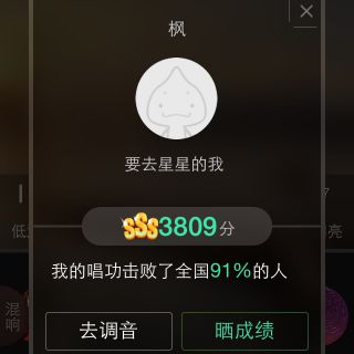 我唱的这首歌打败了全国100%的人,快来听听吧。
