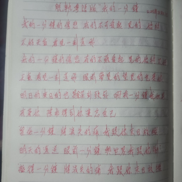 #玩转共创#社长历年来创作粤语歌词收集篇。轨迹粤语版"我的一分钟″创作时间:205年8月21日。如果歌友和声的话,你唱你的国语就行了,粤国合壁!