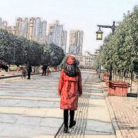 她的背影
