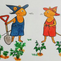 该整理我们房间了,叠好布料,拿上扫把,善良快乐的精灵们把玩具放在架子上,给娃娃盖好被子,房间整理得清洁明亮。