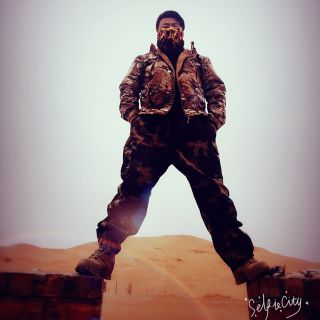 他的背影
