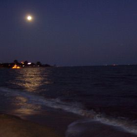 农历三月十六,月圆,珍珠湾踏浪有感