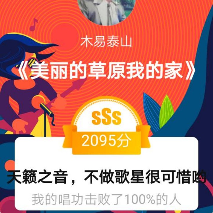 我唱的这首歌打败了全国100%的人,快来听听吧。