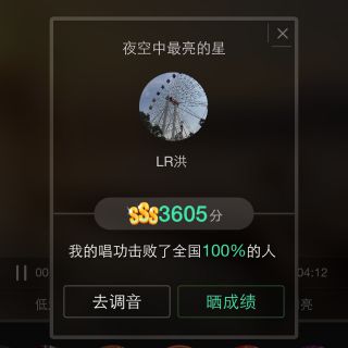 来听听我唱的《天使的翅膀》,击败了全国100%的人