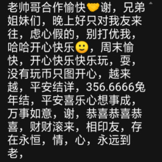 姐合作愉快晚上好友开心就好,谢兄弟姐妹好只对我,合不来不来往。谢356.6666