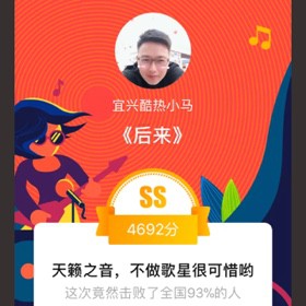 我唱的这首歌打败了全国99%的人,快来听听吧。