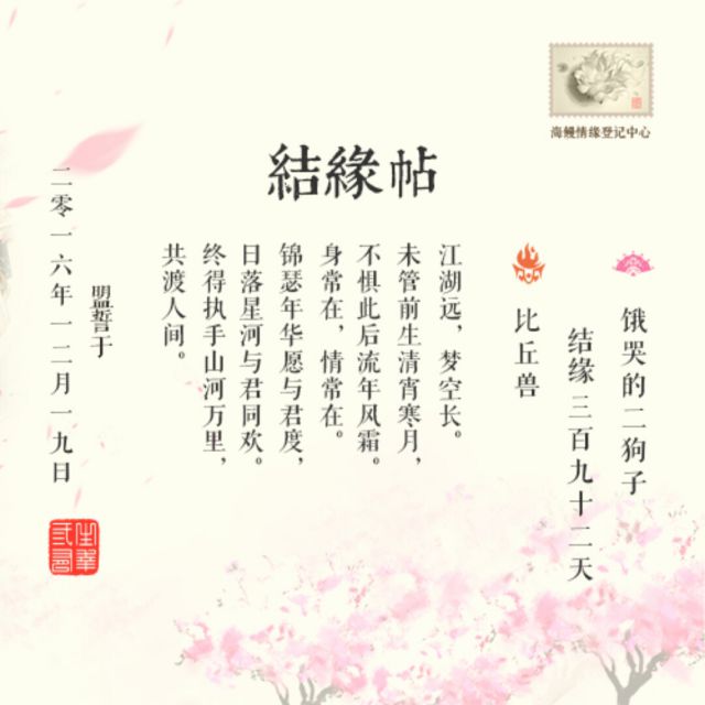 我和灰咩咩两人情缘,然后我转服死了情缘,但海鳗还留着,然后这个撒批就一直说我,冷漠哦!_(:з」∠)_不过我狗写词真的棒啊!mmp
