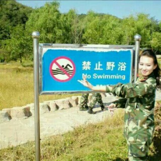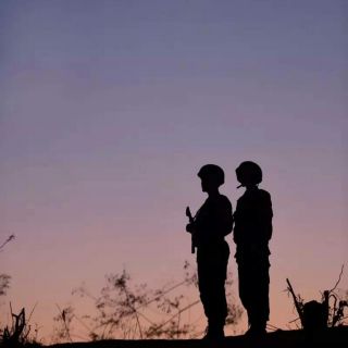 夕阳下的快乐小女兵