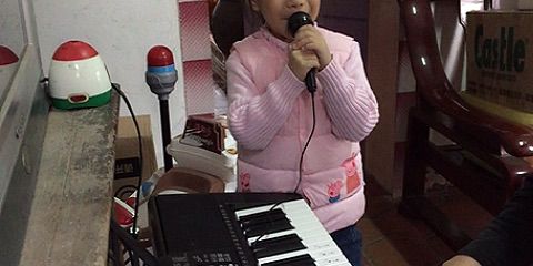 女儿边弹琴边唱歌