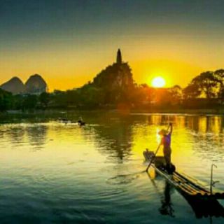 朝霞映在阳澄湖上