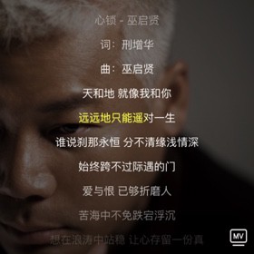 突然喜欢上巫启贤演唱的这首经典心锁 是呀每个人都有内心深处的一把心锁永远也解不开 直到你不知道知觉和呼吸的时候 这把心锁才会解开 💔