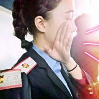 八字带钢盔。