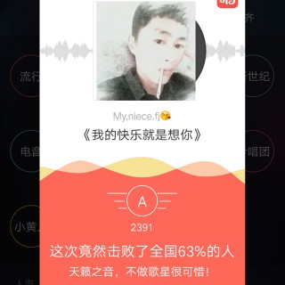 来听听我唱的《我的快乐就是想你》击败了全国62%的人。