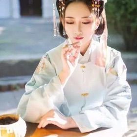 易欢穿一身浅蓝色宫服在凉亭荷花池上雨中起舞、唯美☺