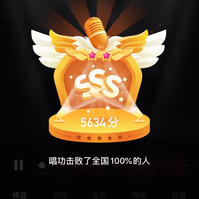 我唱的这首歌打败了全国100%的人,快来听听吧。