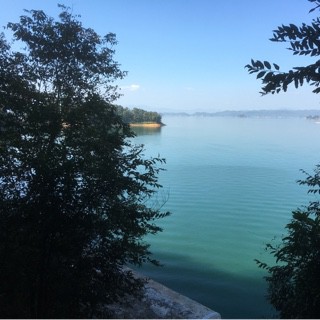 在水中央