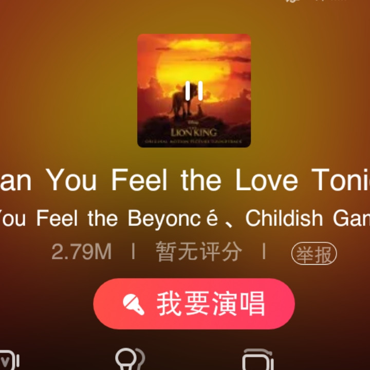 转发歌曲:推荐你来听 北方晕晕✨唱的这首#Can You Feel The Love Tonight (Film Version)-6|玩音乐,就上唱吧!
