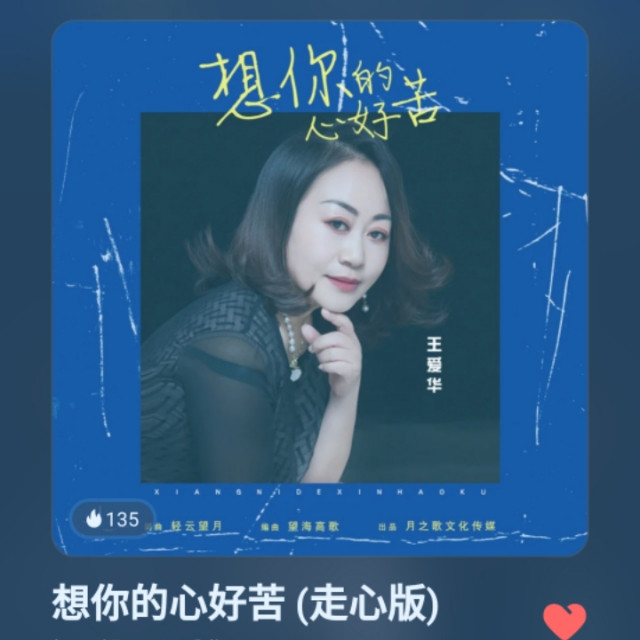 转发歌曲:推荐你来听✨品味✨【2023】与꧁狐🦊💞☆❋合唱的这首#想你的心好苦【走心版】##轻云望月、王爱华#,唱得真棒!