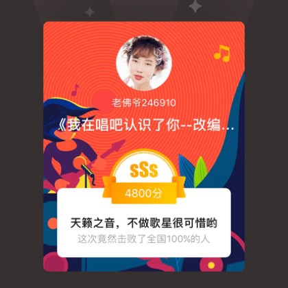 我唱的这首歌打败了全国100%的人,快来听听吧。