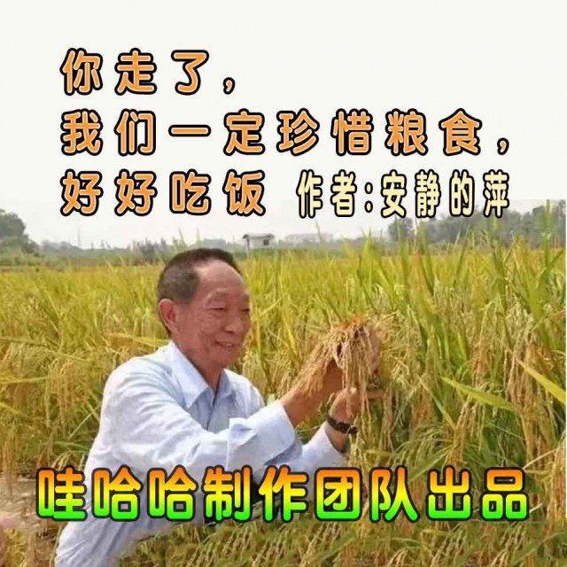 一穷二白时他有颠覆世界权威的胆识,名满天下时他却淡泊名利只爱守望稻田,如今他带着梦的“种子”去了远方却将粮食的种子创新与奋斗的“种子”留给了后来人,功在当代惠泽千秋这才是真正的英雄人物这才是真正的民族脊梁,沉痛缅怀袁老,一路走好!感谢姐姐加入合诵,周末愉快。
